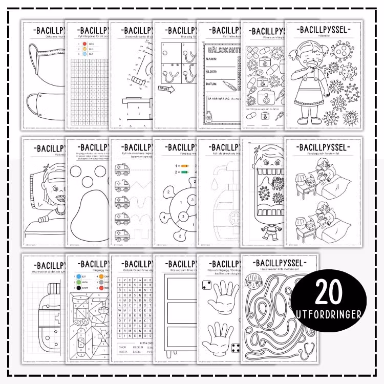 Dette kitet inneholder hel 20 aktiviteter til en sykedag med ulik utfordring.