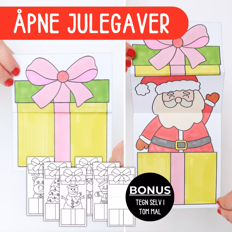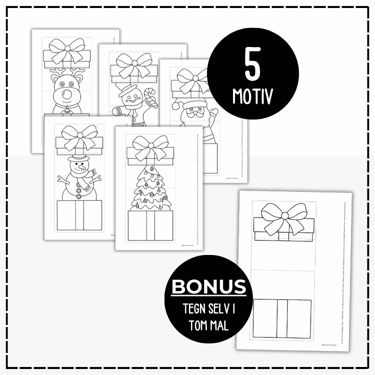 Her lages fem overraskelser, fire med motiv og en hvor du selv kan tegne.