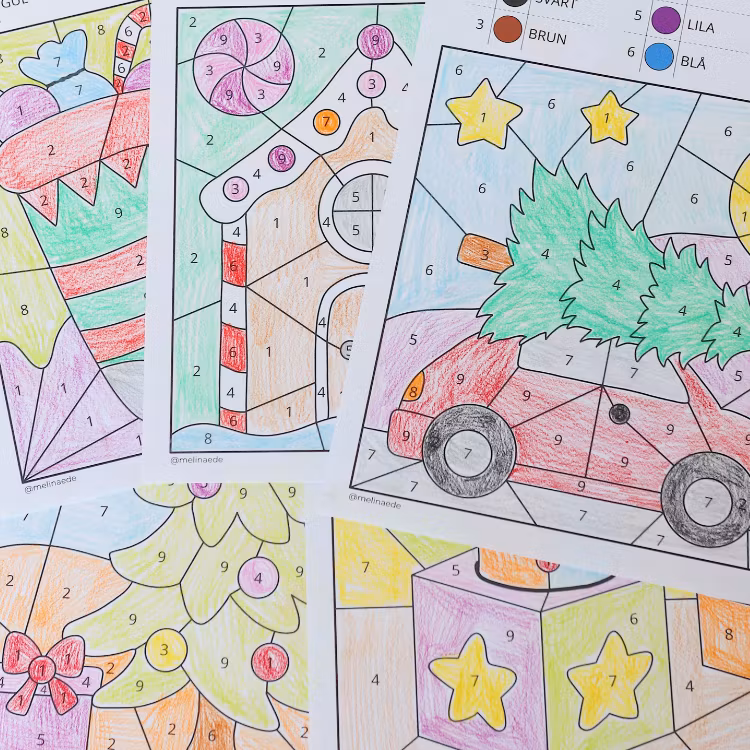 Her følges tall og fargekoder og bildene fylles med herlige farger og skaper stemningsfulle bilder.