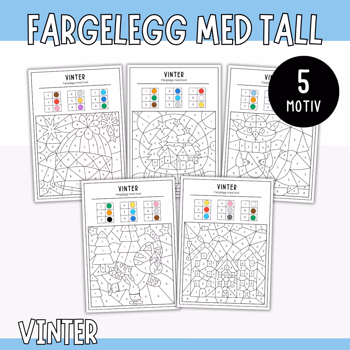 Fargelegg herlige bilder etter tallene. Her får barna en ekstra utfordring med tallkodene.