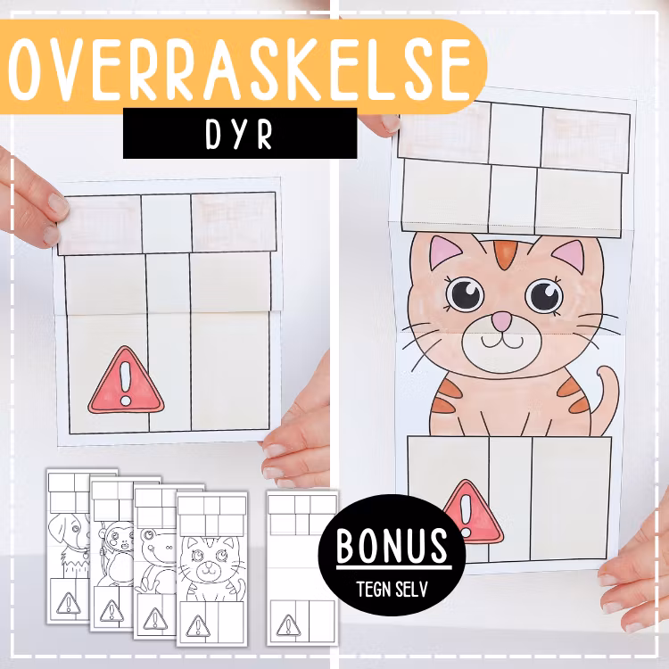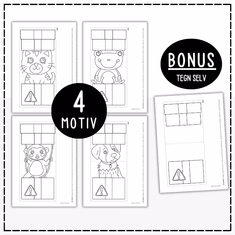 Her lages fem overraskelser, fire med motiv og en hvor du selv kan tegne.