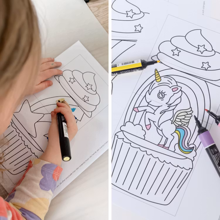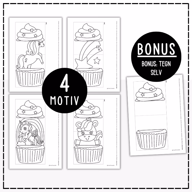 Her lages fem overraskelser, fire med motiv og en hvor du selv kan tegne.