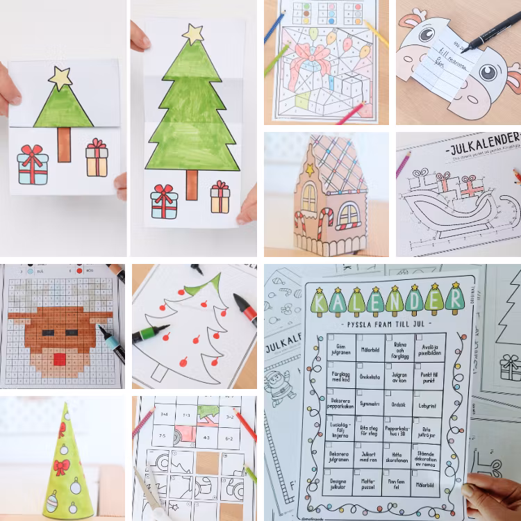 I denne kalenderen vil barna både få bryne seg på skjulte bilder, 3d figurer, fargelegging, julekort og mye mye mer.