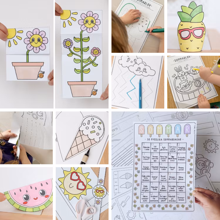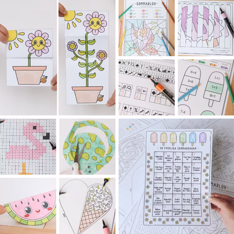 Du trenger noe å fargelegge med, teip og saks for å fullføre alle oppgavene.